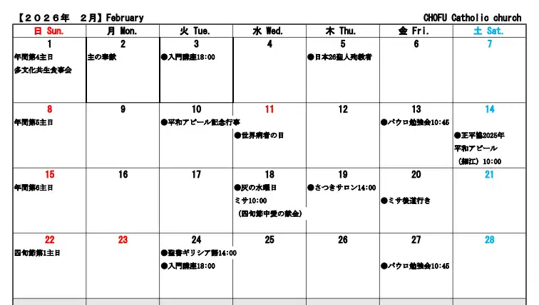 ⛪ » 長府 » 長府・お知らせ・行事 » 長府·お知らせと行事202602