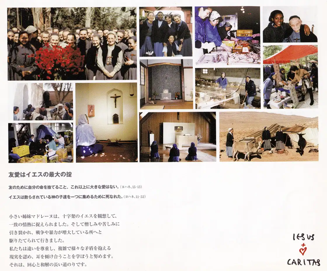 私たちは、イエスに、とりわけベツレヘムとナザレのイエスに倣い、社会の中で人々と労働や夢を分かち合いながら、友愛を育み、光に向って共に歩むようにと、小さい兄弟シャールの心を受け継ぎ、小さい姉妹マドレーヌによって創立されたキリスト教の修道会です。
